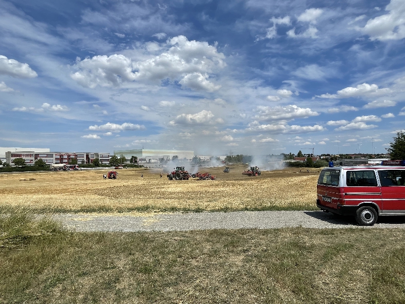 Am 15.Juli wurde die Feuerwehr Gerabronn mit dem Stichwort "Flächenbrand" von der Feuerwehr Blaufelden auf ein Feld an der Straße Am Buchberg nachalarmiert.
