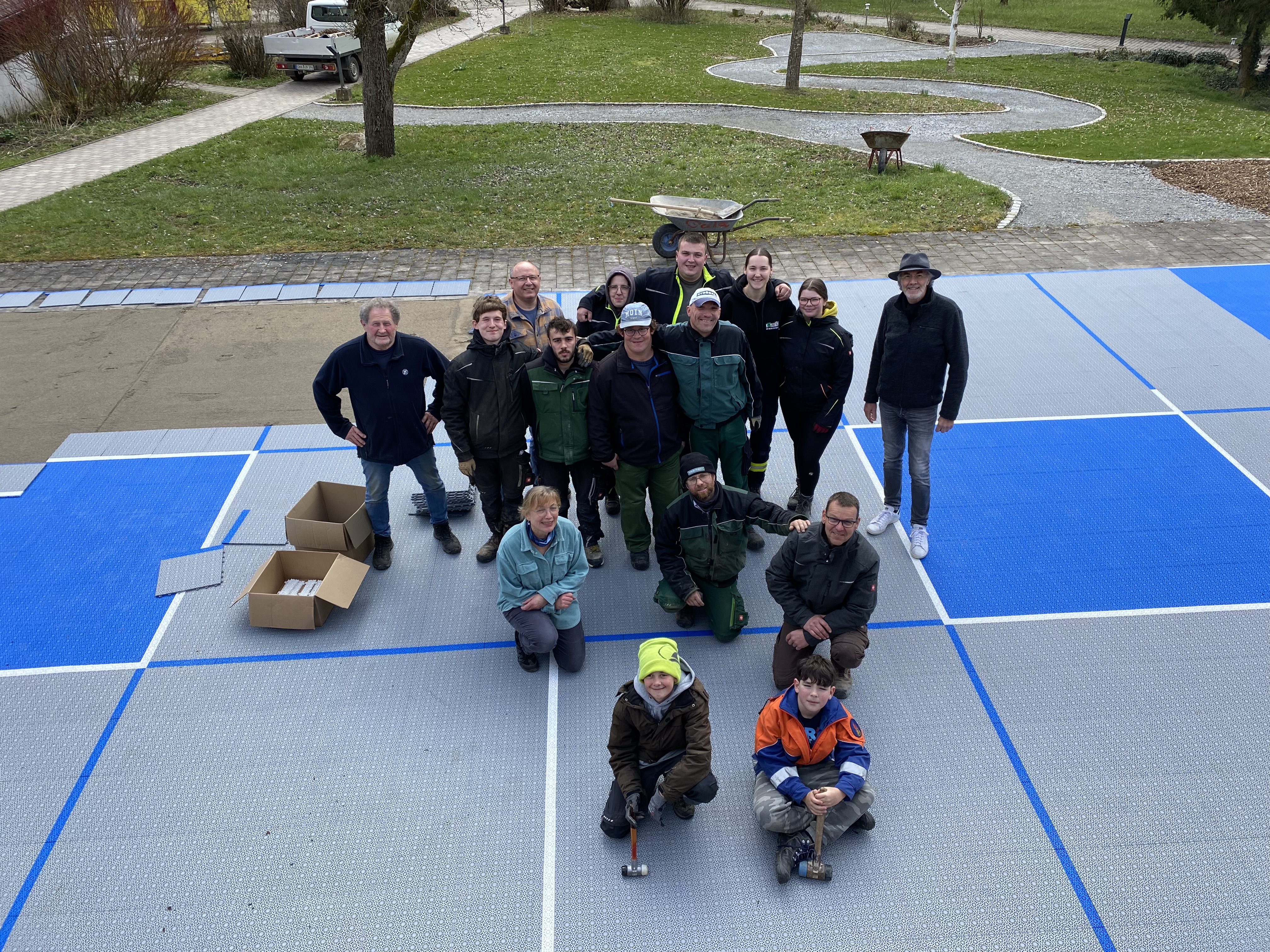 Mit vereinten Kräften der Garten- und Landschaftsbauwerkstatt der Weckelweiler Gemeinschaften und der Jugendfeuerwehr Gerabronn ist am Forellenhof ein neues Basketball- und Fußballspielfeld entstanden. Das gemeinsame Projekt brachte nicht nur ein modernes Bewegungsangebot hervor, sondern förderte zugleich den Austausch zwischen den Beteiligten.